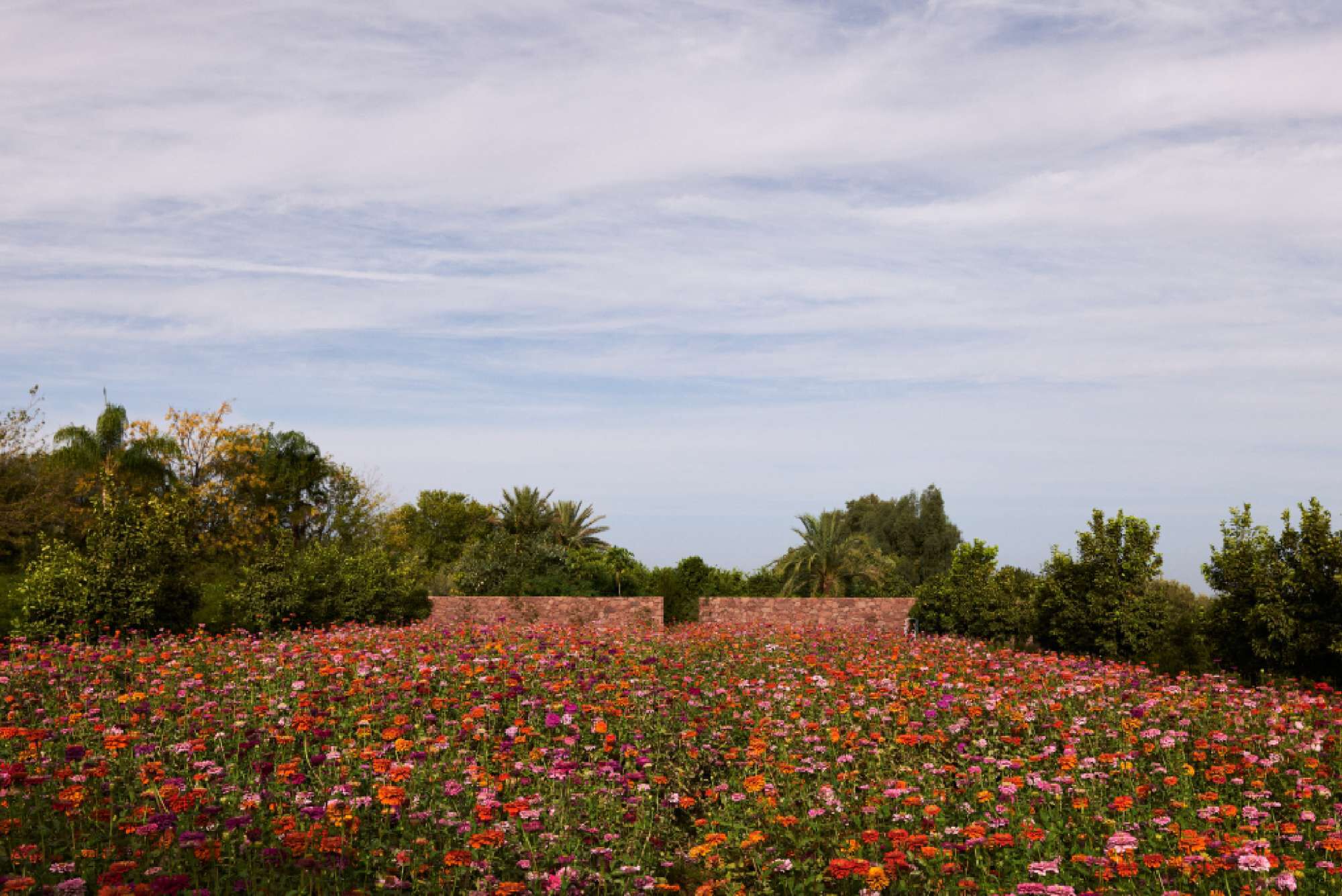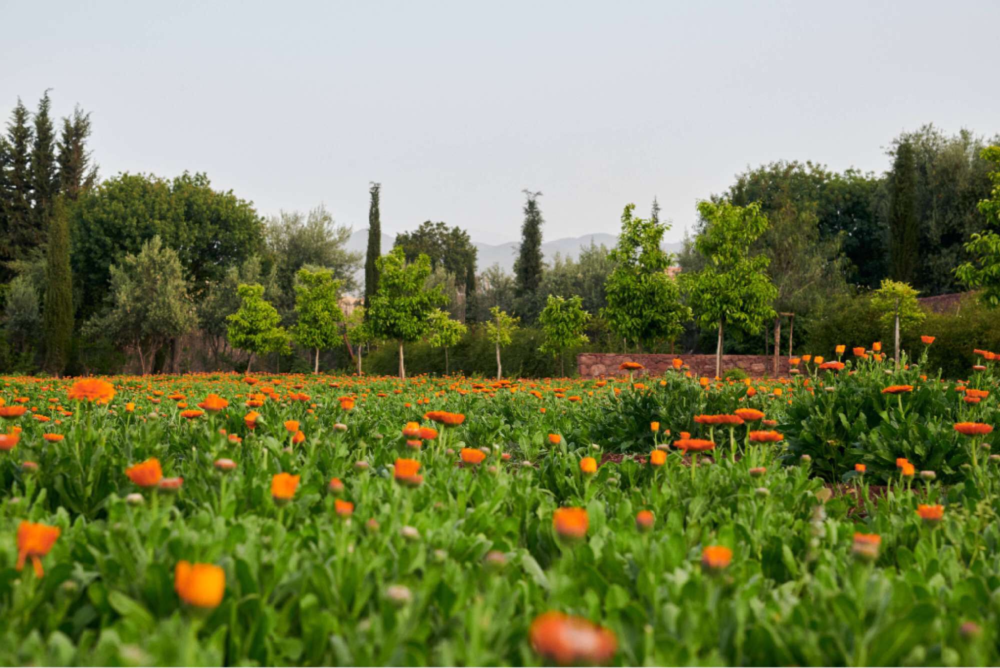 Water flows naturally from the Atlas Mountains down to the parcels. The drystone terraces are home for lemon trees alongside irises, saffron, marigold, cacti, and jasmine.